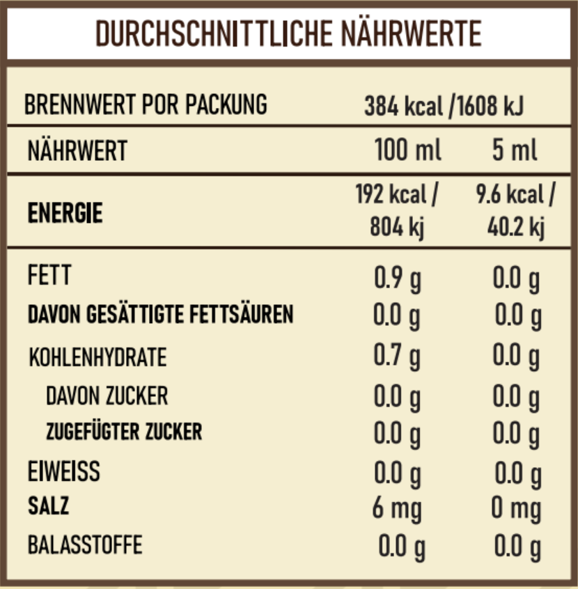 Beschreibung: Charakteristischer Geschmack natürlicher mexikanischer Vanilleschoten und starke, süße, cremige, holzige Aromen und leichte Röstnoten. Mit einem delikaten, blumigen Bouquet am Ende.